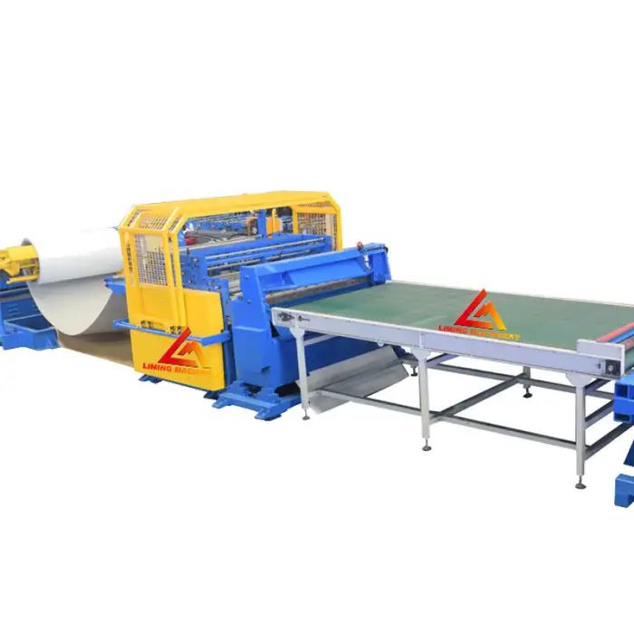 The machine automatically straightens and cuts metal sheets using precision control provided by its advanced PLC system.
