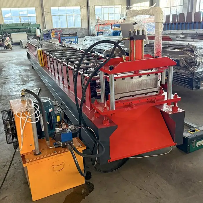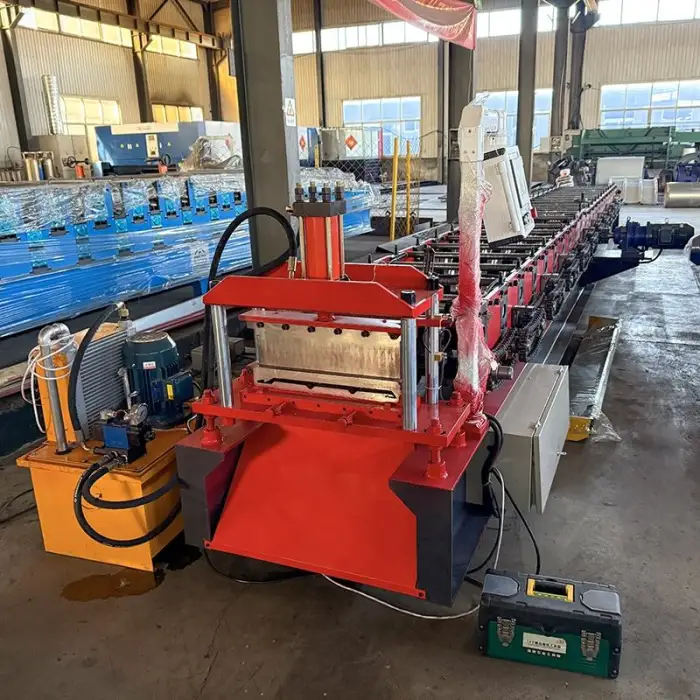 The machine is designed to roll color steel plates, suitable for producing soffit panels and roofing sheets.