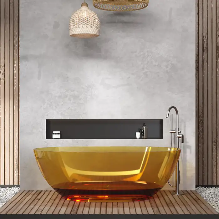 The Colorful Hotel Bathroom Freestanding Resin Bath Tub is designed primarily for indoor use. For outdoor installations, please consult the manufacturer for recommendations.
