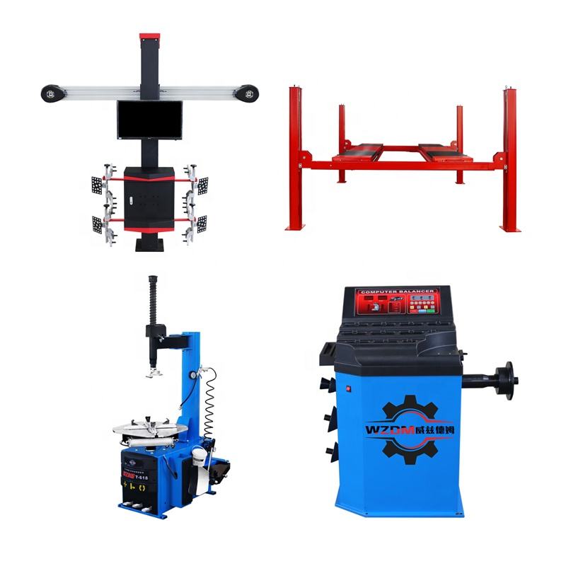 Combo 4 Post Car Lift Wheel Alignment Machine Tire Aligner Auto Wheel Alignment Tire Changer and Wheel Balancing Machine Combo