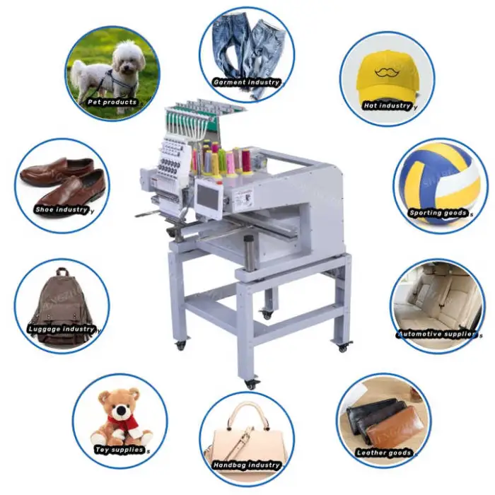 This machine is suitable for a variety of fabric types, including caps, T-shirts, flat fabrics, 3D designs, towels, leather, and jackets.