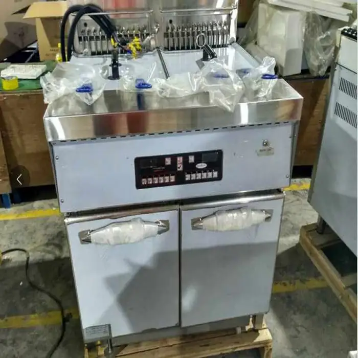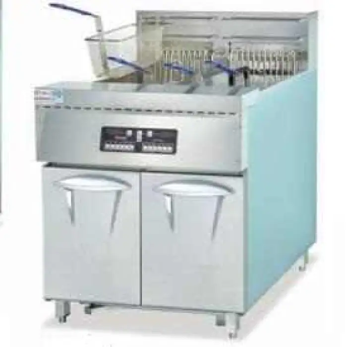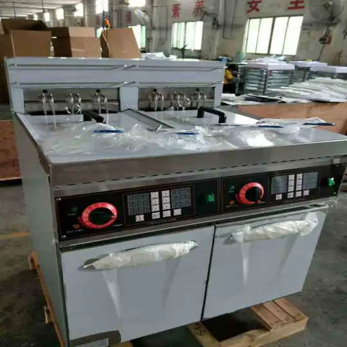 It has two frying tanks and four baskets, allowing you to fry multiple batches or different products simultaneously.