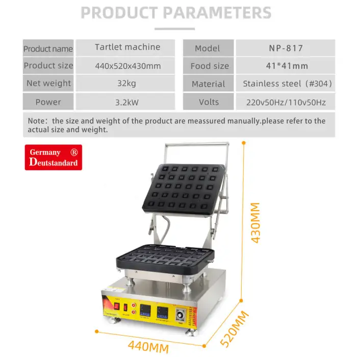 The Commercial Cheese Tart Making Machine is made from high-quality stainless steel, ensuring durability and easy cleaning.