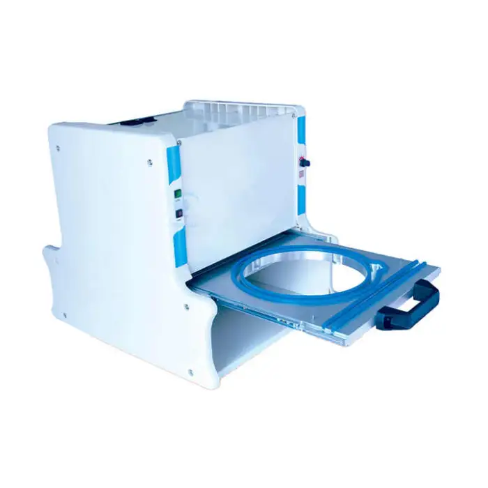 The machine has a compact design, making it easy to place in any workspace without occupying much room.