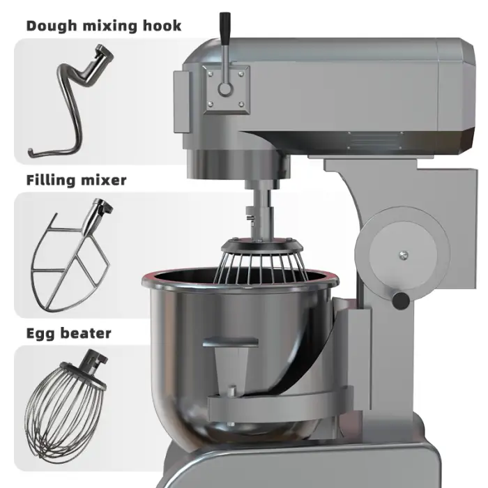 This mixer comes in three different sizes: 10L, 20L, and 30L, allowing you to choose the one that best fits your needs.