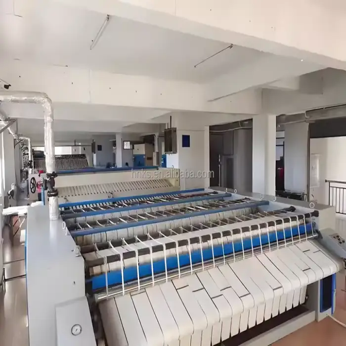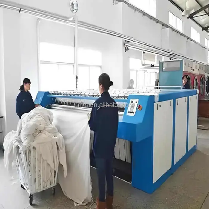 The machine supports a production width of up to 3 meters, designed for large-format/commercial laundry throughput.