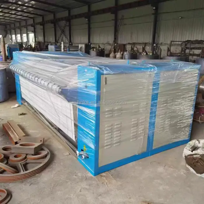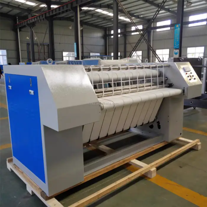 As a motorized industrial ironing system, it produces typical industrial noise levels from the motor and gearbox. If operated continuously near workstations, consider noise assessments and provide hearing protection as needed.