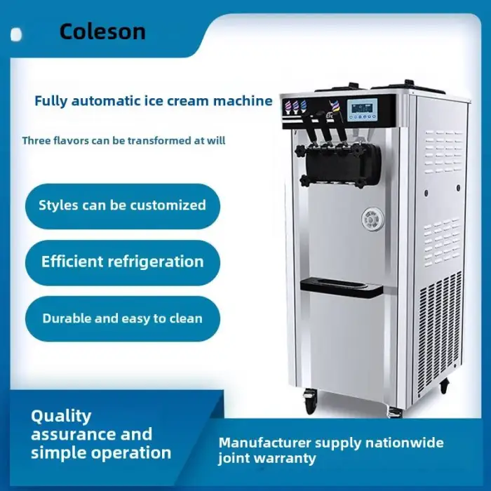Commercial Fully Automatic Stainless Steel Soft Ice Cream Machine Large Output with Sundae Cone Snack Machine