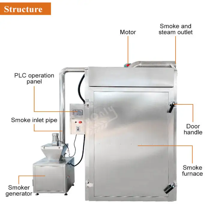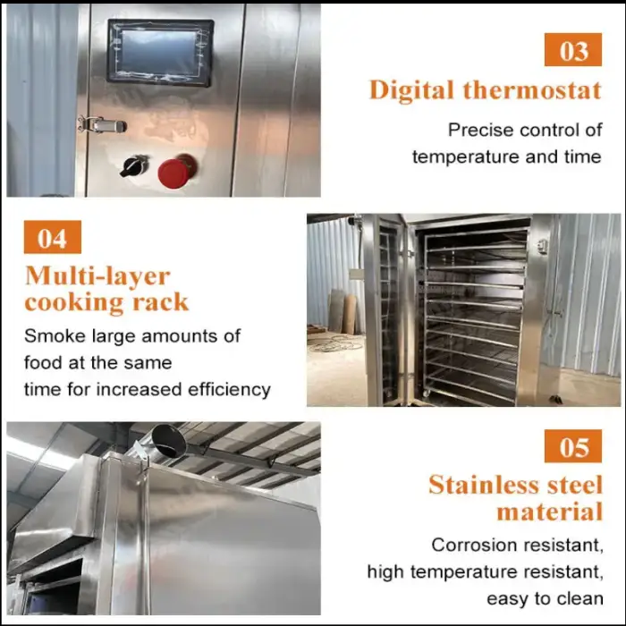 This smoker supports electric, steam, cold smoke, and gas heating sources.