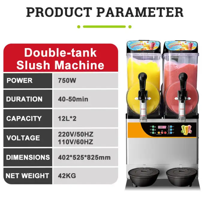 The slushie machine operates at a voltage of 220V-240V and 50HZ, but it can be customized if needed.