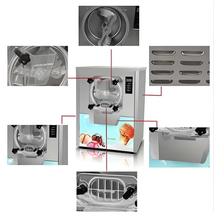 The machine has a production capacity of 20 liters of hard ice cream per hour.