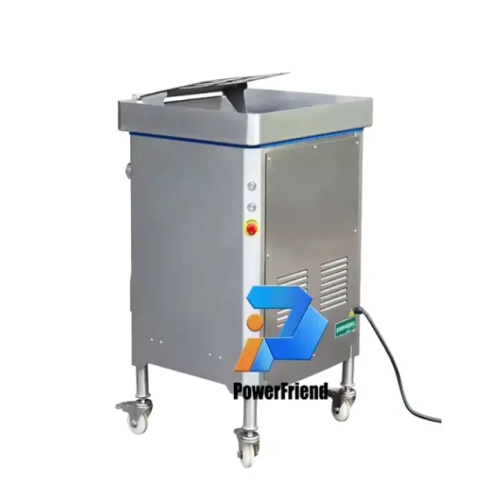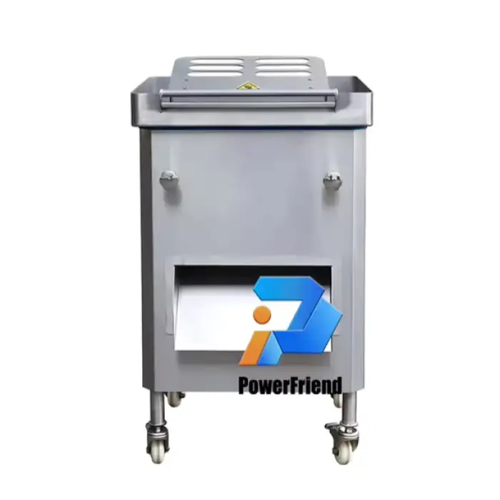 The machine can handle up to 300 kg of meat per hour, making it ideal for high-volume slicing and shredding.
