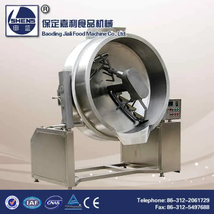 The machine is constructed from high-quality stainless steel suitable for food processing, providing durability and ease of cleaning. It meets CE and ISO9001 certifications.