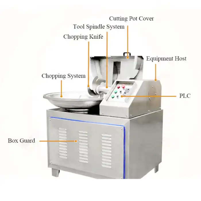 The machine is designed for efficient chopping and mixing, significantly speeding up the food preparation process.