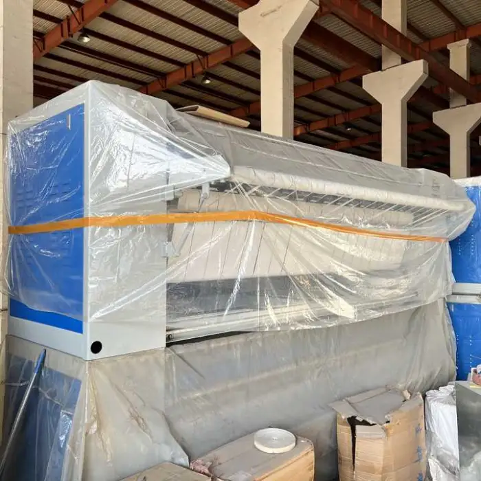 Yes — the 3000 mm width and robust design make it suitable for a range of fabrics such as bedding, linens, uniforms and work garments. For delicate fabrics, operators should use appropriate temperature/pressure settings or pre-check fabric compatibility.