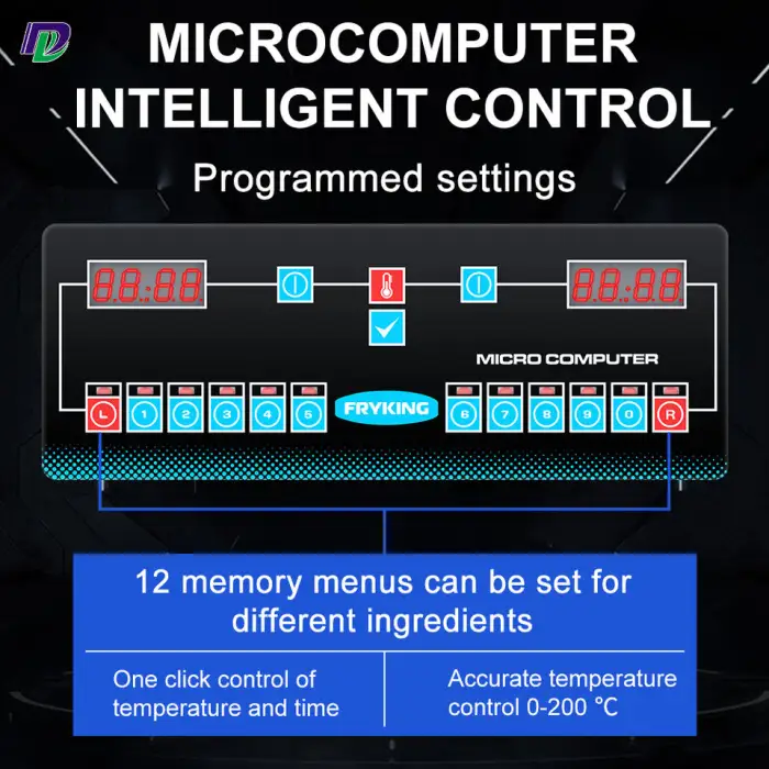 The fryer can achieve temperatures ranging from room temperature up to 200 degrees Celsius.