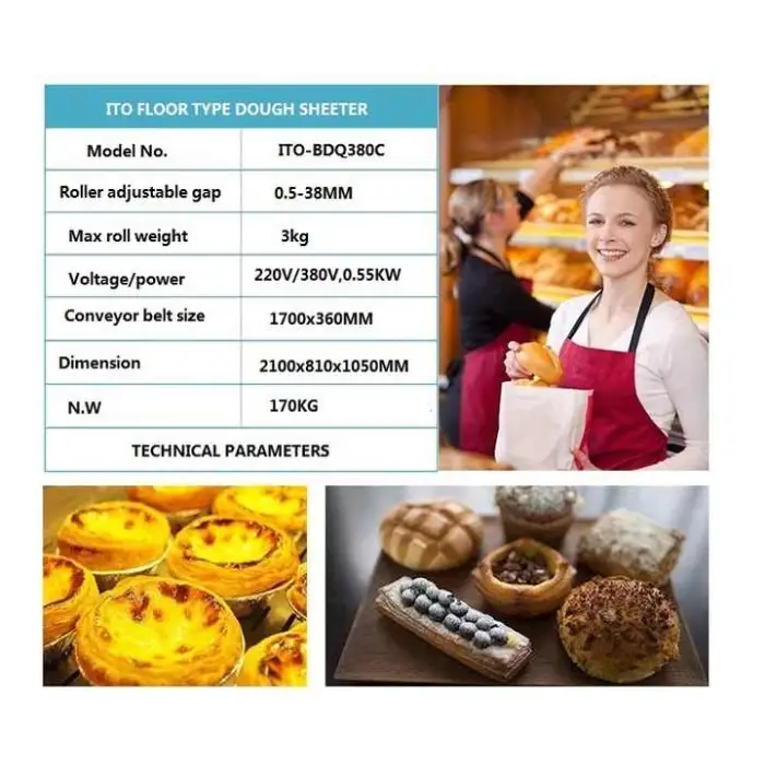 The dough sheeter can process raw materials such as milk, corn, fruit, flour, and water.