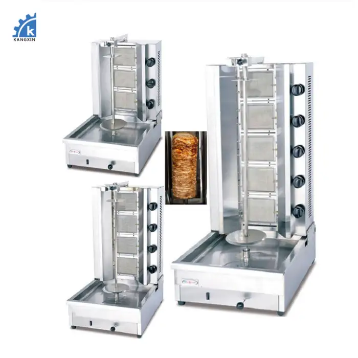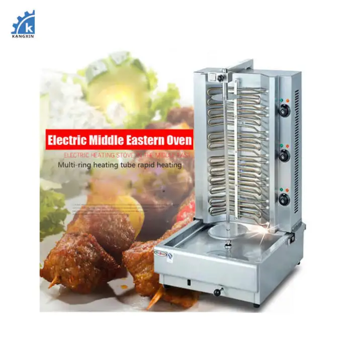 The machine is designed for making shawarma and kebabs, producing high-quality meat products.