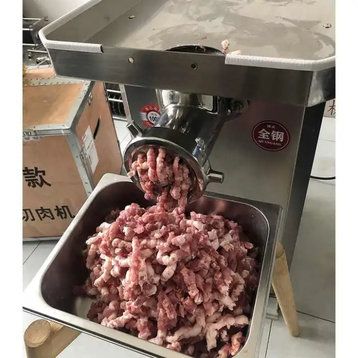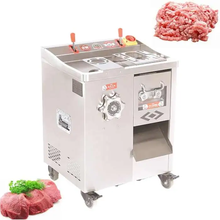This unit is a multi-function commercial machine designed to slice, mince and grind fresh meat — including whole muscle, trimmings and poultry. It’s marketed for use as a meat grinder, meat mincer and meat cutter.
