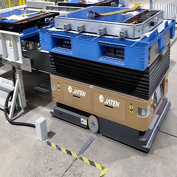 The AGV is manufactured by JATEN, known for its high-performance material handling solutions.