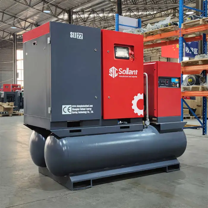The 4-in-1 design integrates multiple functions into a single compact unit — combining the rotary permanent-magnet screw compressor, an integrated air dryer, control system and related components to reduce footprint and simplify installation and operation.