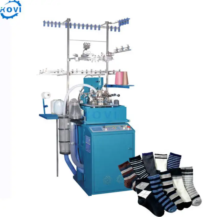 The machine supports between 72 to 200 needles, allowing for versatile sock designs.