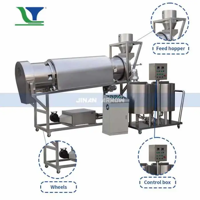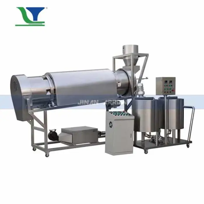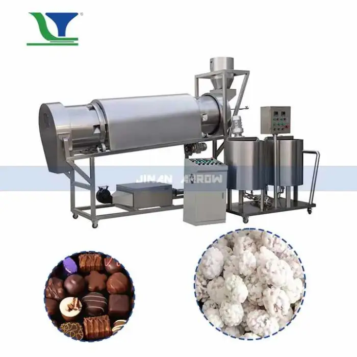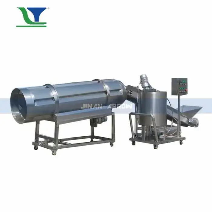 The machine evenly coats snacks with seasonings, ensuring a consistent flavor profile across all products.