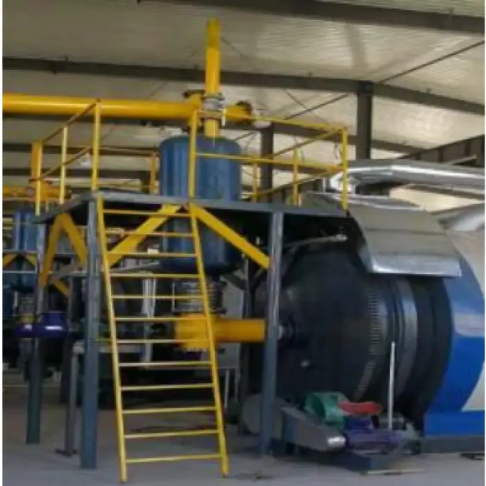 The machine can handle a variety of waste materials including waste tires, waste plastics, oil sludge, and household waste.
