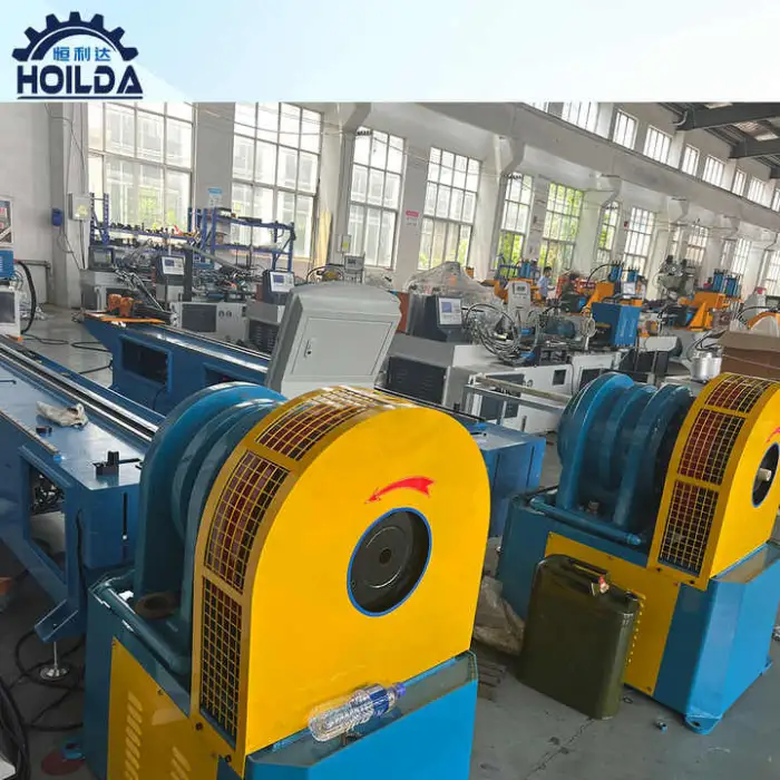 An advanced metal pipe processing machine designed to shrink and form tube ends for precise tapering. It performs automatic tube contraction and end forming for a variety of metals and is intended for manufacturing, HVAC, automotive and plumbing applications.