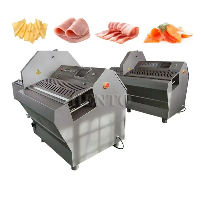 The machine has a high capacity, slicing between 160 to 180 pieces per minute.