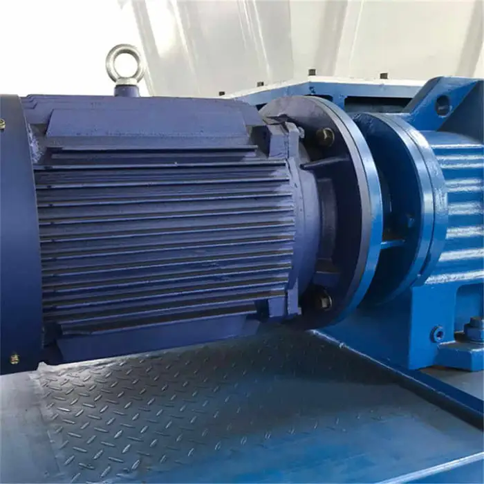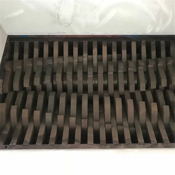 The shredder features a double shaft design that enhances shredding efficiency.