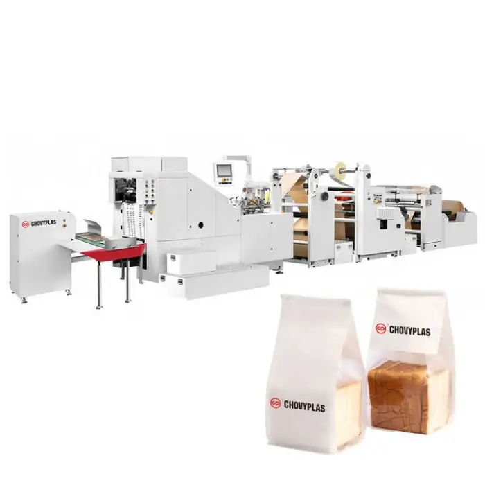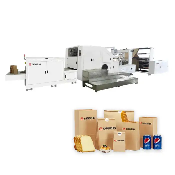 The CP-FD330 machine is designed to produce square bottom shopping paper bags, making it ideal for retail and grocery applications.