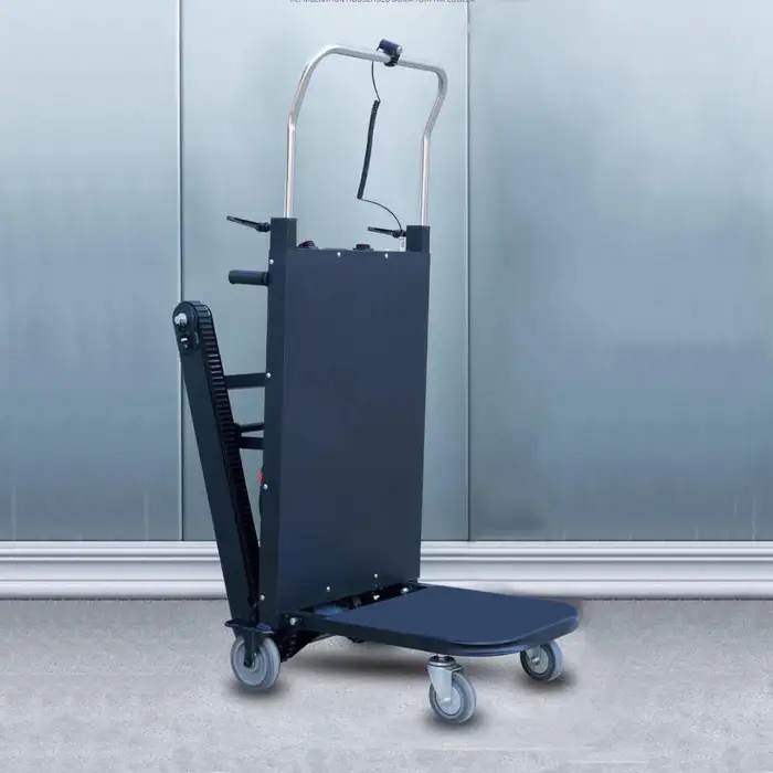 The electric motor provides power to the trolley, enabling it to climb stairs effortlessly without manual lifting.