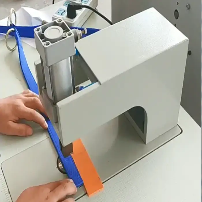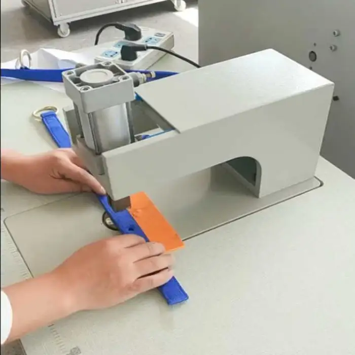 This machine is suitable for a wide range of materials including woven belts, laces, zippers, trademarks, and various leather materials.