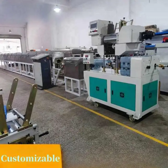 The machine features customizable settings that allow it to adapt to various production needs, making it versatile for different applications.
