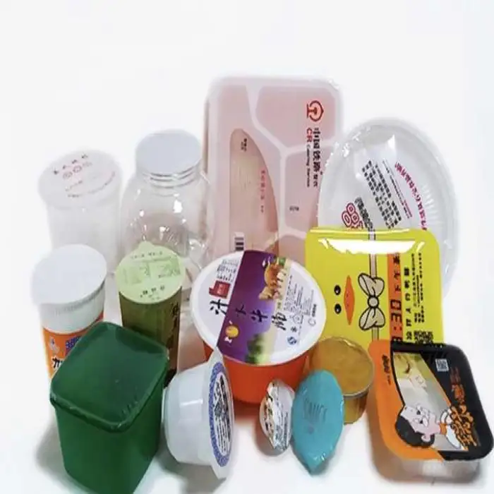 Designed primarily for plastic trays and plastic milk-tea cups using compatible sealing film or lids. It is advertised as compatible with various packaging materials and types (films, foil and common plastic containers). For unusual materials or shapes, confirm compatibility with the supplier.