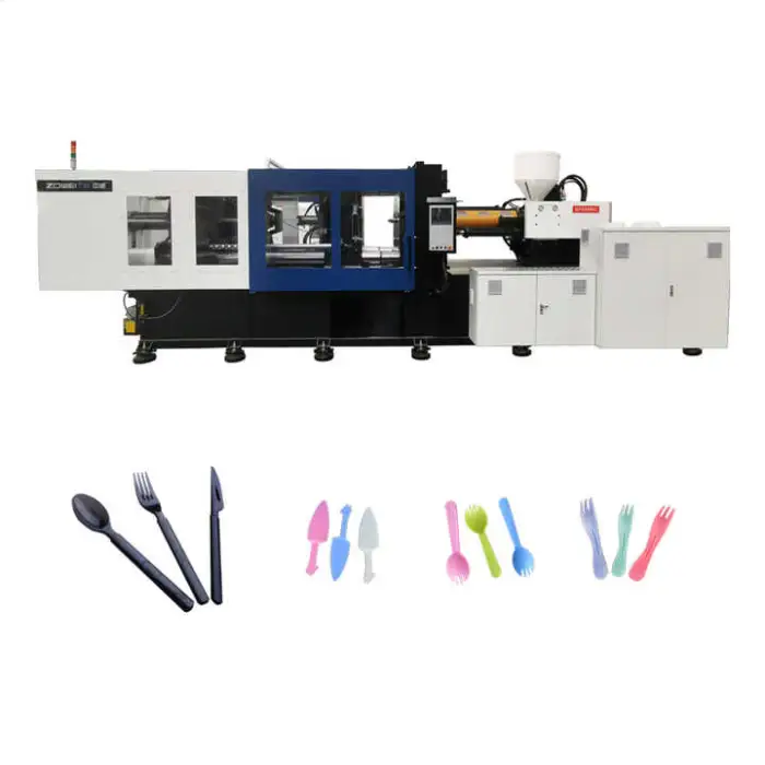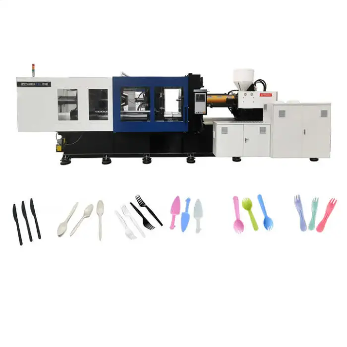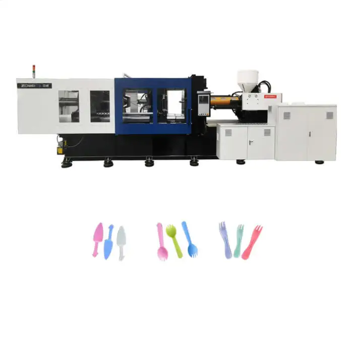This injection molding machine can process a variety of plastics including PP, PC, ABS, PET, PVC, FRPP/PVC, PPR, EVA, HDPE, MLLDPE, PA, Polystyrene, PE, LDPE, EVOH, and combinations such as HDPE/PP and ABS/PP.