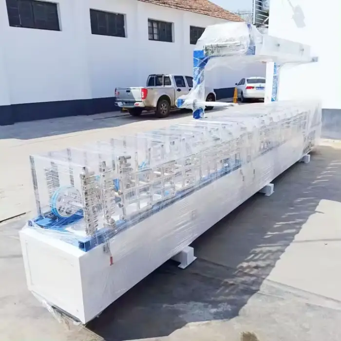The Door Frame Making Machine is packaged in a sturdy wooden case for safe transport.