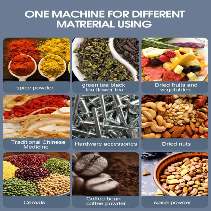 The Dried Fruit Spaghetti Mushroom Salad Herbs Grated Cheese Flower Packing Packaging Machine is suitable for packaging a variety of products, including dried fruits, salads, mushrooms, herbs, grated cheese, and even other food, beverage, commodity, and chemical items.