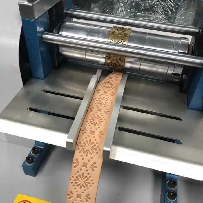 This machine is suitable for embossing leather belts and can also be used for various leather goods in the production industry.