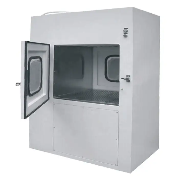 The pass box is designed for safe material transfer in cleanroom environments. For hazardous materials, please consult safety guidelines and regulations specific to your industry.