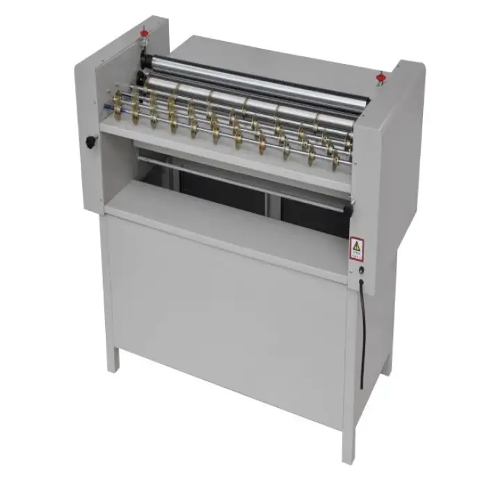The machine is driven by a powerful pneumatic system for efficient gluing.