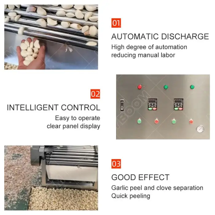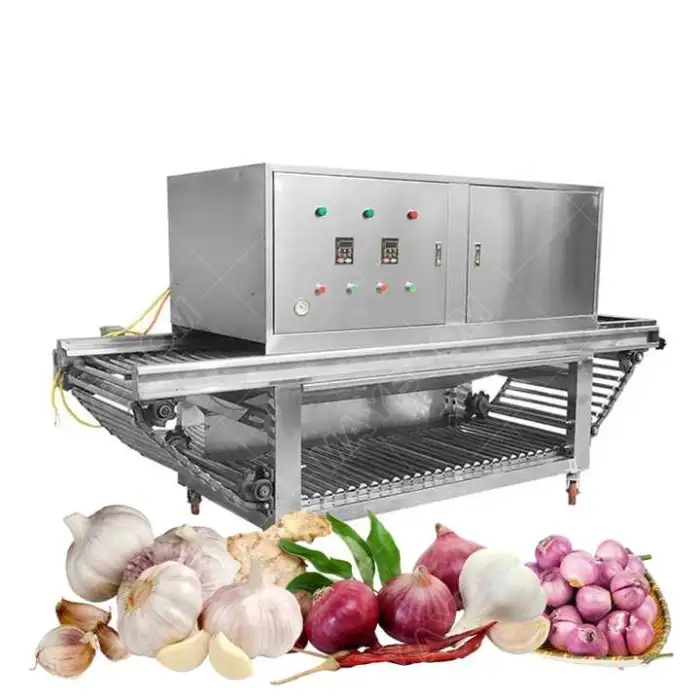 The main function of this machinery is to automate the garlic peeling process, making it quick and efficient, while also being capable of processing onions.