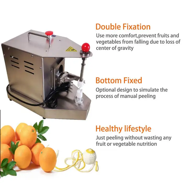 The Electric Automatic Peeler is designed for round-shaped fruits such as oranges, apples, and mangoes.