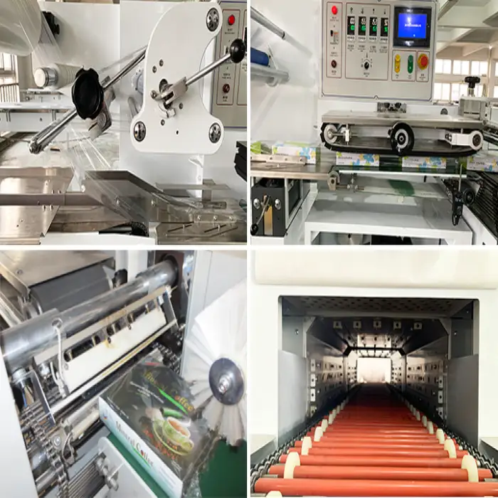Key features include three servo motors for precise control, high-speed flow sealing, and automatic operation to save time and labor.