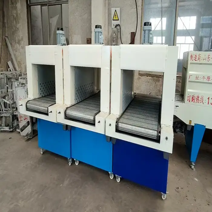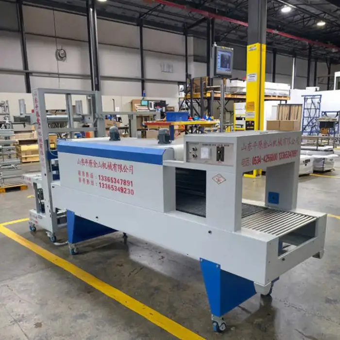 This machine uses polyethylene and polyvinyl chloride film sleeves for effective shrink wrapping.