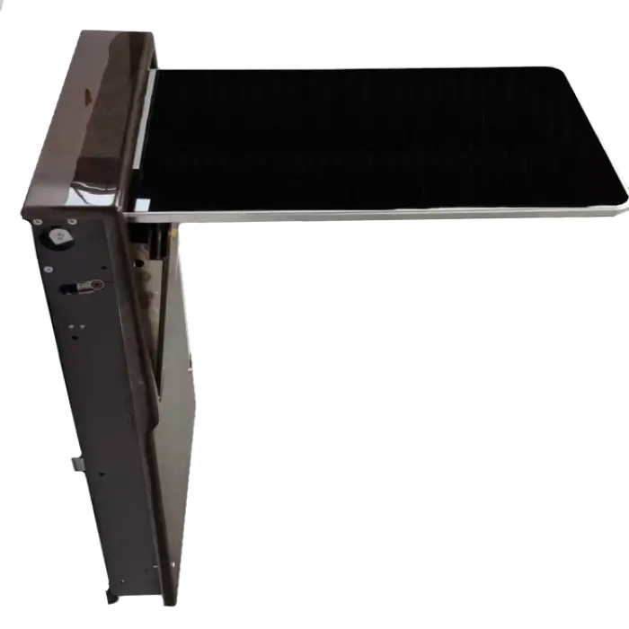 The Electric Folding Table is available in a sleek black color, which fits well with the luxury design of your vehicle.