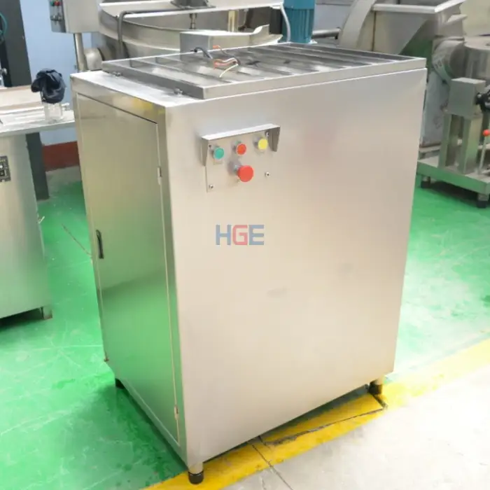 The machine has a production capacity of approximately 1000–1500 kg per hour, depending on meat type, degree of freezing, and feed rate.