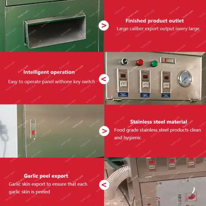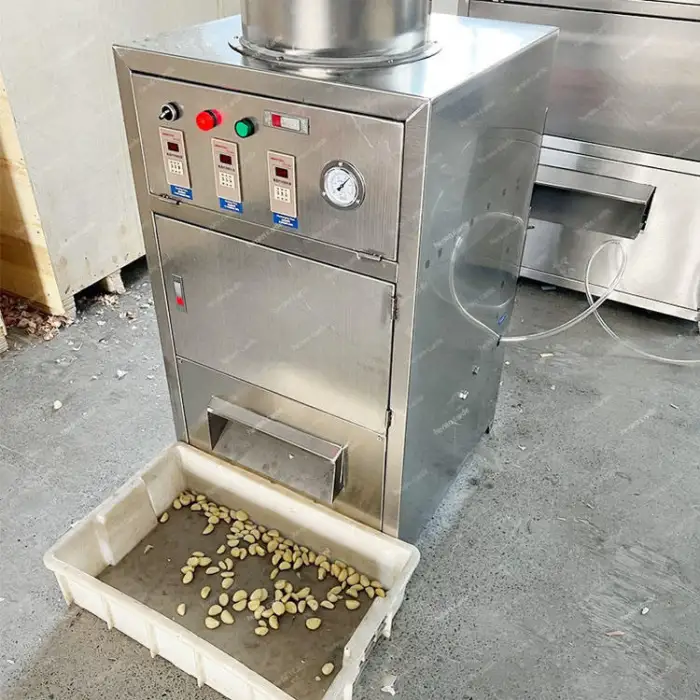 The machine uses an automatic peeling mechanism that efficiently removes the skins of garlic and ginger with minimal manual intervention.