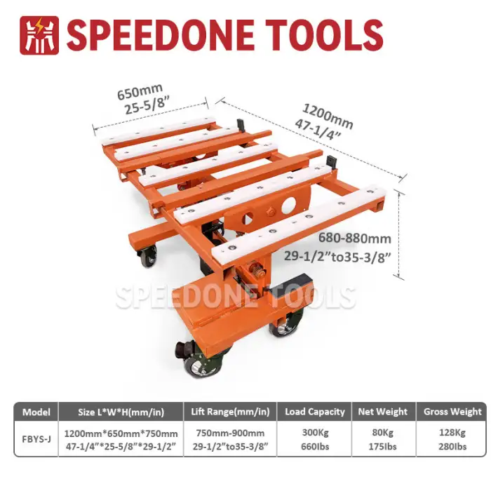 The lift range of the cart is adjustable from 680mm to 880mm.